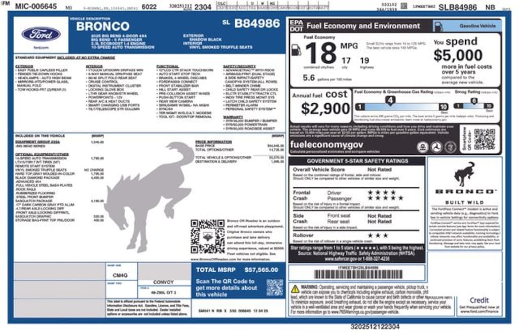 Black 2025 Ford Bronco Big Bend 2.3L EcoBoost I-4 4D Sport Utility 4WD