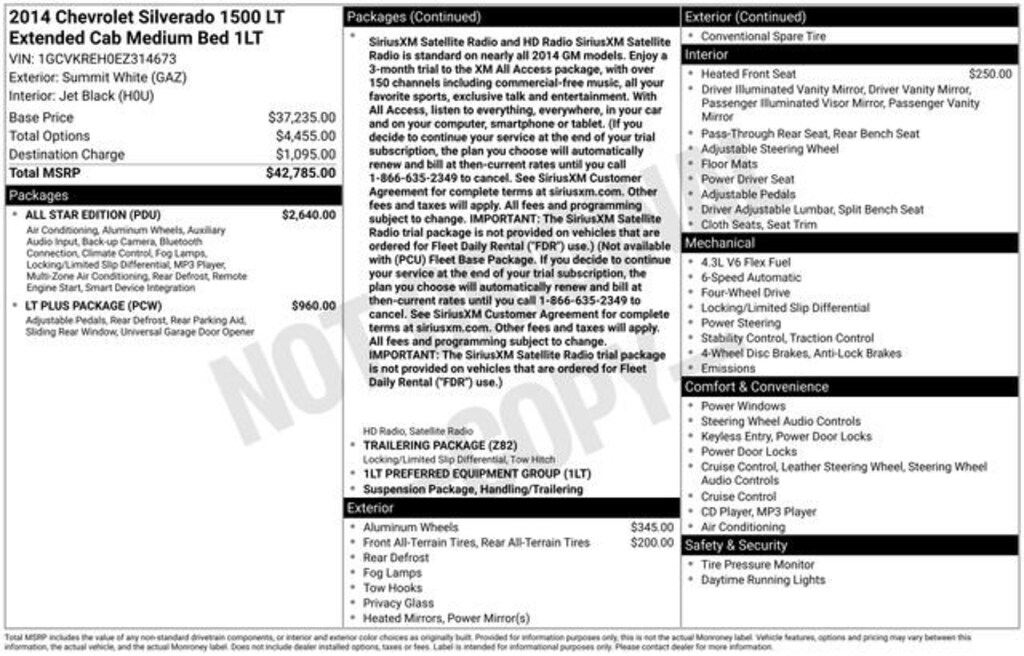 Recent Arrival! Clean CARFAX.*** WE DELIVER ***Summit White 2014 Chevrolet Silverado 1500 LT LT1 4D Double Cab EcoTec3 4.3L V6 Flex Fuel 6-Speed Automatic Electronic with Overdrive 4WD10-Way Power Driver's Seat Adjuster, 110-Volt AC Power Outlet, 150 Amp Alternator, 3.42 Rear Axle Ratio, 4-Wheel Disc Brakes, 4.2 Diagonal Color Display Driver Info Center, 40/20/40 Front Split Bench Seat, 6 Speaker Audio System, 6 Speakers, ABS brakes, Air Conditioning, All Star Edition, Alloy wheels, AM/FM radio: SiriusXM, Black Power Adjustable Heated Outside Mirrors, Bluetooth® For Phone, Brake assist, Bumpers: chrome, CD player, Cloth Seat Trim, Color-Keyed Carpeting w/Rubberized Vinyl Floor Mats, Compass, Deep-Tinted Glass, Delay-off headlights, Driver & Front Passenger Illuminated Vanity Mirrors, Driver door bin, Driver vanity mirror, Dual front impact airbags, Dual front side impact airbags, Dual-Zone Automatic Climate Control, Electric Rear-Window Defogger, Electronic Stability Control, Emergency communication system: OnStar Directions & Connections, EZ Lift & Lower Tailgate, Front anti-roll bar, Front Center Armrest w/Storage, Front Chrome Bumper, Front Frame-Mounted Black Recovery Hooks, Front Halogen Fog Lamps, Front reading lights, Front wheel independent suspension, Fully automatic headlights, Heated door mirrors, Heated Driver & Front Passenger Seats, Heavy-Duty Rear Locking Differential, Illuminated entry, Leather Wrapped Steering Wheel w/Cruise Controls, LED Cargo Box Lighting, Low tire pressure warning, LT Plus Package, Manual Tilt Wheel Steering Column, Occupant sensing airbag, OnStar 6 Months Directions & Connections Plan, Outside temperature display, Overhead airbag, Overhead console, Panic alarm, Passenger door bin, Passenger vanity mirror, Power Adjustable Pedals, Power door mirrors, Power Sliding Rear Window w/Defogger, Power steering, Power windows, Power Windows w/Driver Express Up, Premium audio system: Chevrolet MyLink, Radio data system, Radio: AM/FM 8 Diagonal Color Touch Screen, Radio: AM/FM Audio System w/Chevrolet MyLink, Rear 60/40 Folding Bench Seat (Folds Up), Rear Chrome Bumper, Rear reading lights, Rear step bumper, Rear Vision Camera w/Dynamic Guide Lines, Rear Wheelhouse Liners, Remote Keyless Entry, Remote keyless entry, Remote Vehicle Starter System, Single Slot CD/MP3 Player, SiriusXM Satellite & HD Radio, Speed control, Speed-sensing steering, Split folding rear seat, Steering Wheel Audio Controls, Steering wheel mounted audio controls, Tachometer, Theft Deterrent System (Unauthorized Entry), Tilt steering wheel, Traction control, Trailering Equipment, Trip computer, Ultrasonic Rear Park Assist, Universal Home Remote, Variably intermittent wipers, Voltmeter, Wheels: 17 x 8 Bright Machined Aluminum.
