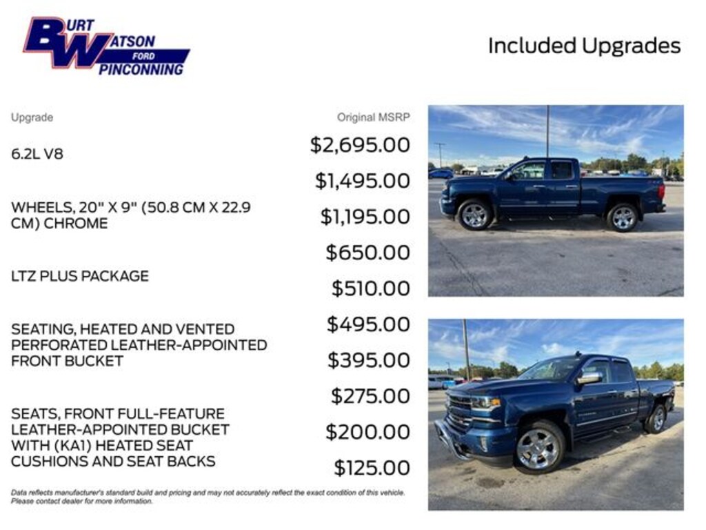 Local Trade, Non Smoker, Leather Seats, 110 point inspection certified, 172 point inspection certified, 1st oil change free with purchase, Ceramic coating available on all purchases at discounted pricing, service report available, Cooling Seats, Heated Seats, Leather Wrapped Heated Steering Wheel, LTZ Plus Package, Power Adjustable Pedals, Trailering Package, 110-Volt AC Power Outlet, 150 Amp Alternator, 3.08 Rear Axle Ratio, 3.23 Rear Axle Ratio, 4-Wheel Disc Brakes, 4.2" Diagonal Color Display Driver Info Center, 40/20/40 Front Split Bench Seat, 6 Speaker Audio System, 6 Speakers, ABS brakes, Active Noise Cancellation, Air Conditioning, All-Weather Floor Liner (LPO), Alloy wheels, AM/FM radio: SiriusXM, Auto-dimming door mirrors, Auto-Dimming Inside Rear-View Mirror, Auto-dimming Rear-View mirror, Automatic temperature control, Auxiliary External Transmission Oil Cooler, Bluetooth® For Phone, Bodyside moldings, Bose Speaker System, Brake assist, CD player, Chevrolet Connected Access, Chevrolet w/4G LTE, Chrome Bodyside Moldings, Chrome Cap Power-Adjustable Heated Outside Mirrors, Chrome Door Handles, Chrome Mirror Caps, Color-Keyed Carpeting w/Rubberized Vinyl Floor Mats, Compass, Deep-Tinted Glass, Delay-off headlights, Driver & Front Passenger Illuminated Vanity Mirrors, Driver door bin, Driver vanity mirror, Dual front impact airbags, Dual front side impact airbags, Dual-Zone Automatic Climate Control, Electric Rear-Window Defogger, Electronic Stability Control, Exterior Parking Camera Rear, EZ Lift & Lower Tailgate, Floor Mounted Console, Front anti-roll bar, Front Center Armrest w/Storage, Front Chrome Bumper, Front dual zone A/C, Front fog lights, Front Frame-Mounted Black Recovery Hooks, Front Full Feature Power Reclining Bucket Seats, Front reading lights, Front wheel independent suspension, Fully automatic headlights, Garage door transmitter, HD Radio, Heated & Vented Front Seating, Heated door mirrors, Heated Driver & Front Passenger Seats, Heated front seats, Heavy-Duty Rear Locking Differential, Illuminated entry, Integrated Trailer Brake Controller, Leather Appointed Seat Trim, Leather Wrapped Steering Wheel w/Cruise Controls, LED Cargo Box Lighting, LED Taillamps w/Signature, Low tire pressure warning, Manual Tilt/Telescoping Steering Column, Memory seat, Occupant sensing airbag, OnStar & Chevrolet Connected Services Capable, Outside temperature display, Overhead airbag, Overhead console, Panic alarm, Passenger door bin, Passenger vanity mirror, Power door mirrors, Power driver seat, Power passenger seat, Power Sliding Rear Window w/Defogger, Power steering, Power windows, Power Windows w/Driver Express Up, Premium audio system: Chevrolet MyLink, Radio data system, Radio: AM/FM 8" Diagonal Clr Touch Nav, Radio: AM/FM 8" Diagonal Color Touch Screen, Rear 60/40 Folding Bench Seat (Folds Up), Rear Chrome Bumper, Rear reading lights, Rear step bumper, Rear Wheelhouse Liners, Rear window defroster, Remote Keyless Entry, Remote keyless entry, Remote Locking Tailgate, Remote Vehicle Starter System, Security system, Single Slot CD/MP3 Player, SiriusXM Satellite Radio, Speed control, Speed-sensing steering, Split folding rear seat, Steering Wheel Audio Controls, Steering wheel mounted audio controls, Tachometer, Telescoping steering wheel, Theft Deterrent System (Unauthorized Entry), Thin Profile LED Fog Lamps, Tilt steering wheel, Traction control, Trip computer, Turn signal indicator mirrors, Ultrasonic Front & Rear Park Assist, Universal Home Remote, Variably intermittent wipers, Voltmeter, Wheel Locks (Set of 4) (LPO), Wheels: 20" x 9" Chrome, Wireless Charging, Leather Wrapped Heated Steering Wheel, LTZ Plus Package, Power Adjustable Pedals, Trailering Package.