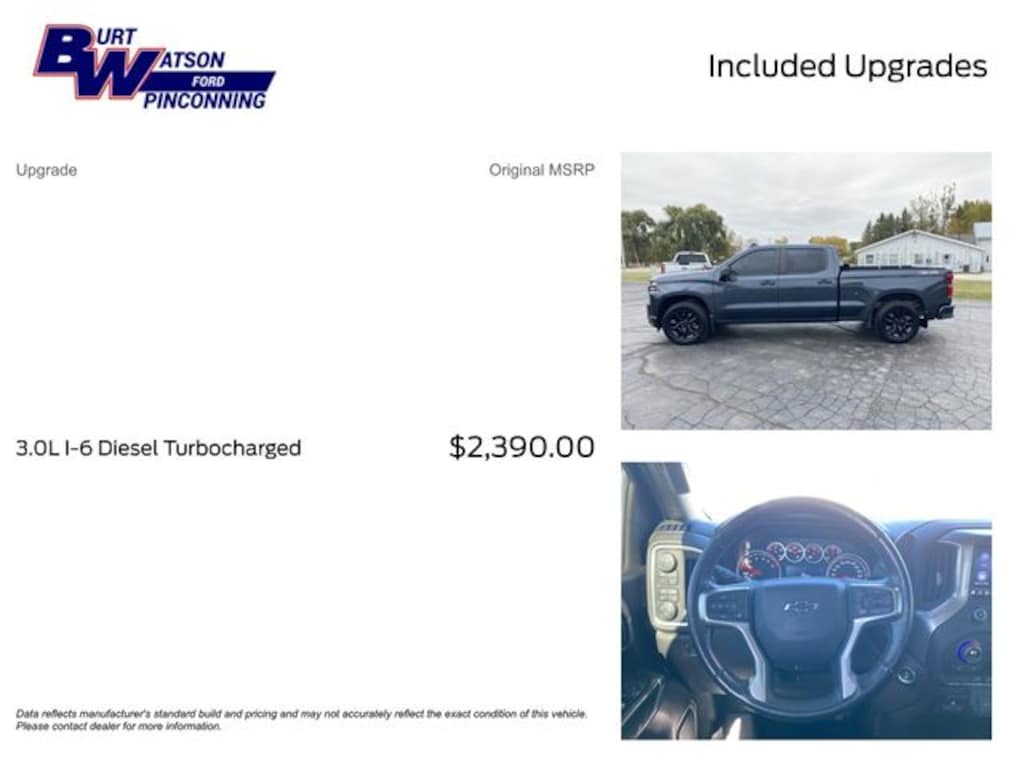 Local Trade, Non Smoker, 2 key sets, 172 point inspection certified, 1st oil change free with purchase, 2 Key Fobs, Ceramic coating available on all purchases at discounted pricing, service report available, Heated Seats, Digital Key, In-Vehicle Wi-Fi, Stolen vehicle location/ recovery system, 10-Way Power Driver Seat w/Lumbar, 12-Volt Rear Auxiliary Power Outlet, 2 USB Ports (First Row), 3.73 Rear Axle Ratio, 40/20/40 Front Split-Bench Seat, 6 Speakers, 6-Speaker Audio System, Air Conditioning, All-Star Edition, Alloy wheels, AM/FM radio: SiriusXM, Auto-Locking Rear Differential, Automatic temperature control, Black Name Plates (LPO), Bluetooth® For Phone, Body Color Grille, Brake assist, Bumpers: body-color, Chrome Assist Steps, Cloth Rear Seat w/Storage Package, Convenience Package, Dark Essentials Package (LPO), Deep-Tinted Glass, Delay-off headlights, Diesel Off-Road Package, Dual-Zone Automatic Climate Control, Electric Rear-Window Defogger, Electrical Lock Control Steering Column, Electronic Stability Control, EZ Lift Power Lock & Release Tailgate, Front anti-roll bar, Front dual zone A/C, Front fog lights, Front Frame-Mounted Black Recovery Hooks, Front reading lights, Front Rubberized Vinyl Floor Mats, Front wheel independent suspension, Fully automatic headlights, Hard-Folding Tonneau Cover (LPO), Heated front seats, Heated Steering Wheel, Heated steering wheel, Hitch Guidance, Illuminated entry, Keyless Open & Start, Leather Wrapped Steering Wheel, Low tire pressure warning, Manual Tilt/Telescoping Steering Column, Occupant sensing airbag, Overhead airbag, Panic alarm, Power Door Locks, Power Front Windows w/Driver Express Up/Down, Power Front Windows w/Passenger Express Down, Premium audio system: Chevrolet Infotainment 3, Radio data system, Radio: Chevrolet Infotainment 3 System, Rear 60/40 Folding Bench Seat (Folds Up), Rear Dual USB Charging-Only Ports, Rear Vision Camera, Rear window defroster, Remote keyless entry, Remote Vehicle Starter System, Security system, SiriusXM Radio, Standard Tailgate, Steering Wheel Audio Controls, Steering wheel mounted audio controls, Tachometer, Telescoping steering wheel, Theft Deterrent System (Unauthorized Entry), Tilt steering wheel, Traction control, Trailering Package, Variably intermittent wipers, 220 Amp Alternator, 4-Wheel Disc Brakes, 4.2" Diagonal Color Display Driver Info Center, 4G LTE Wi-Fi Hot Spot Capable, ABS brakes, Apple CarPlay/Android Auto, Chevrolet Connected Access Capable, Cloth Seat Trim, Color-Keyed Carpeting Floor Covering, Compass, Driver door bin, Driver vanity mirror, Dual front impact airbags, Dual front side impact airbags, Electronic Cruise Control, Front Center Armrest w/Storage, Front LED Fog Lamps, Heated door mirrors, Heated Driver & Front Outboard Passenger Seats, Heavy Duty Suspension, High Gloss Black Mirror Caps, LED Cargo Area Lighting, OnStar & Chevrolet Connected Services Capable, Outside temperature display, Overhead console, Passenger door bin, Passenger vanity mirror, Power door mirrors, Power driver seat, Power Rear Windows w/Express Down, Power steering, Power windows, Rear reading lights, Rear Rubberized-Vinyl Floor Mats, Rear seat center armrest, Rear step bumper, Speed control, Speed-sensing steering, Split folding rear seat, Trip computer, Voltmeter, 10-Way Power Driver Seat w/Lumbar, 12-Volt Rear Auxiliary Power Outlet, 2 USB Ports (First Row), 3.73 Rear Axle Ratio, 40/20/40 Front Split-Bench Seat, 6 Speakers, 6-Speaker Audio System, Air Conditioning, All-Star Edition, Alloy wheels, AM/FM radio: SiriusXM, Auto-Locking Rear Differential, Automatic temperature control, Black Name Plates (LPO), Bluetooth® For Phone, Body Color Grille, Brake assist, Bumpers: body-color, Chro