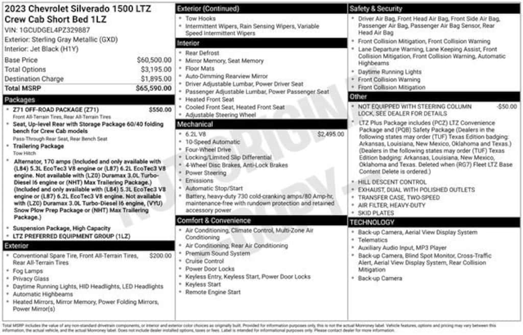 Sterling Gray Metallic 2023 Chevrolet Silverado 1500 LTZ 4D Crew Cab EcoTec3 6.2L V8 10-Speed Automatic 4WD