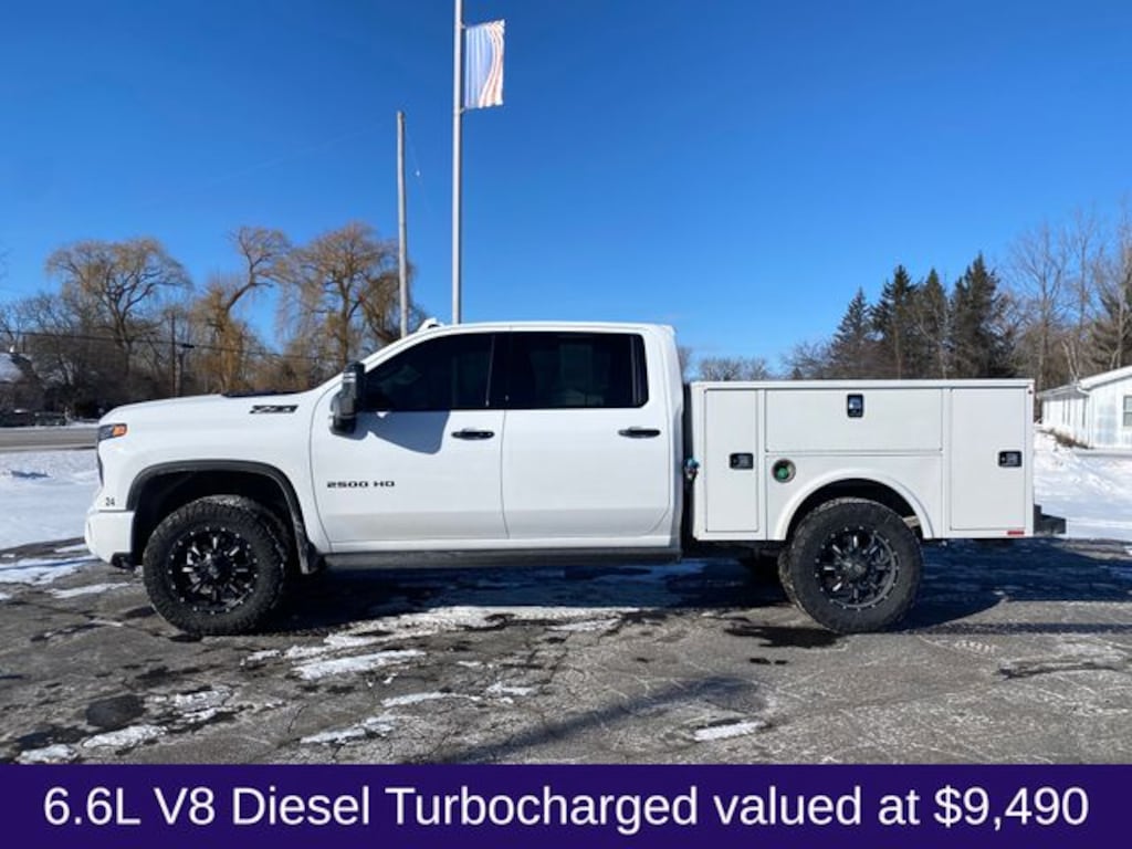 Summit White 2024 Chevrolet Silverado 2500HD LTZ 4D Crew Cab 4WD 10-Speed Automatic Duramax 6.6L V8 Turbodiesel