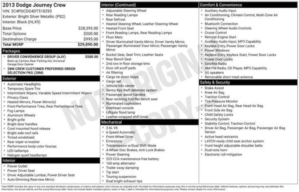 Bright Silver Metallic Clearcoat 2013 Dodge Journey Crew 4D Sport Utility 3.6L V6 24V VVT 6-Speed Automatic FWD
