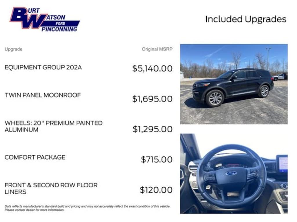 Pricing shown excludes tax, title, license, registration, or other applicable government fees. Any optional products, services, or accessories are also not reflected in the advertised price. At Burt Watson, it is our belief that every customer deserves a buying experience built on clarity and honesty. We're dedicated to doing business the right way, simply and transparently. While we make every effort to ensure the information on our site is accurate and up to date, occasional errors, omissions, or inaccuracies may occur. Additionally, there may be a delay between when a vehicle is sold and when our online inventory is updated. We encourage you to confirm all vehicle details and pricing directly with our team before purchase.