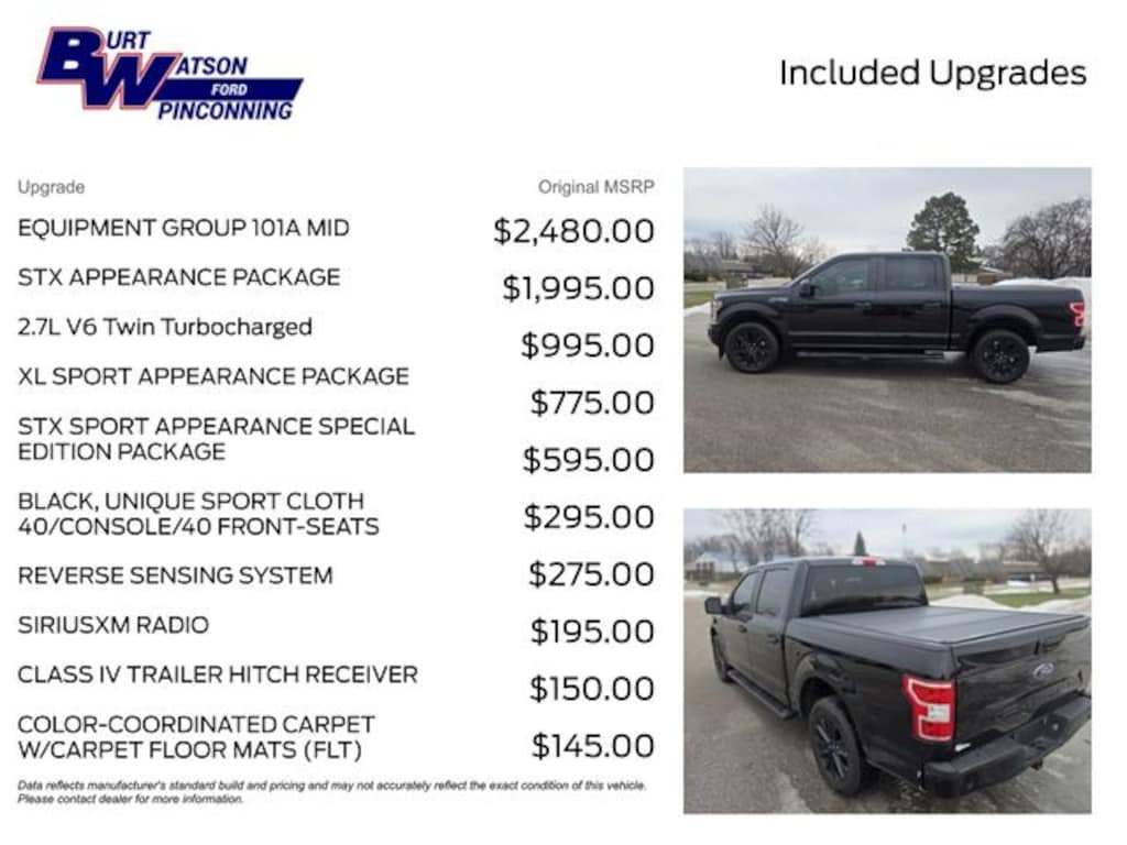 Local Trade, Non Smoker, 172 point inspection certified, 1st oil change free with purchase, Ceramic coating available on all purchases at discounted pricing, service report available, 20" Machined-Aluminum Wheels, 4-Wheel Disc Brakes, 6 Speakers, ABS brakes, Air Conditioning, AM/FM radio, Auto High-beam Headlights, Body-Color Front & Rear Bumpers, Body-Color Surround w/Black Mesh Insert Grille, Box Side Decals, Brake assist, Chrome Exhaust Extension, Class IV Trailer Hitch Receiver, Cloth 40/20/40 Front Seat, Color-Coordinated Carpet w/Carpeted Floor Mats, Compass, Cruise Control, Delay-off headlights, Driver door bin, Driver/Passenger Seat Back Pocket, Dual front impact airbags, Dual front side impact airbags, Electronic Stability Control, Equipment Group 101A Mid, Exterior Parking Camera Rear, Fog Lamps, FordPass Connect (4G), Front anti-roll bar, Front Center Armrest, Front wheel independent suspension, Fully automatic headlights, Illuminated Entry, Low tire pressure warning, Manual Driver/Passenger Lumbar, MyKey, Occupant sensing airbag, Outside temperature display, Overhead airbag, Passenger door bin, Passenger vanity mirror, Perimeter Alarm, Power Door Locks, Power Front & Rear Windows, Power Glass Sideview Mirrors w/Black Skull Caps, Power steering, Power Tailgate Lock, Radio: AM/FM Stereo w/6 Speakers, Rear step bumper, Rear Window Defroster, Rear Window Fixed Privacy Glass, Reverse Sensing System, SiriusXM Radio, Speed-sensing steering, Split folding rear seat, Sport Box Side Accent Stripe, STX Appearance Package, STX Sport Appearance Special Edition Package, SYNC 3, Tachometer, Telescoping steering wheel, Tilt steering wheel, Traction control, Unique Sport Cloth 40/20/40 Front-Seats, Variably intermittent wipers, Voltmeter, Wheels: 17" Silver Painted Aluminum, Wheels: 17" Silver Steel, Wheels: 20" Unique Premium Tarnished Dark Painted, XL Power Equipment Group, XL Sport Appearance Package.