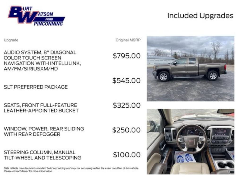 Pre-Owned Vehicle Fees are $1,110* All online prices are excluding service contracts. At Burt Watson we strongly believe in the value of the service contracts that we offer. The price we quote in store will always include a service contract which can be removed upon request.