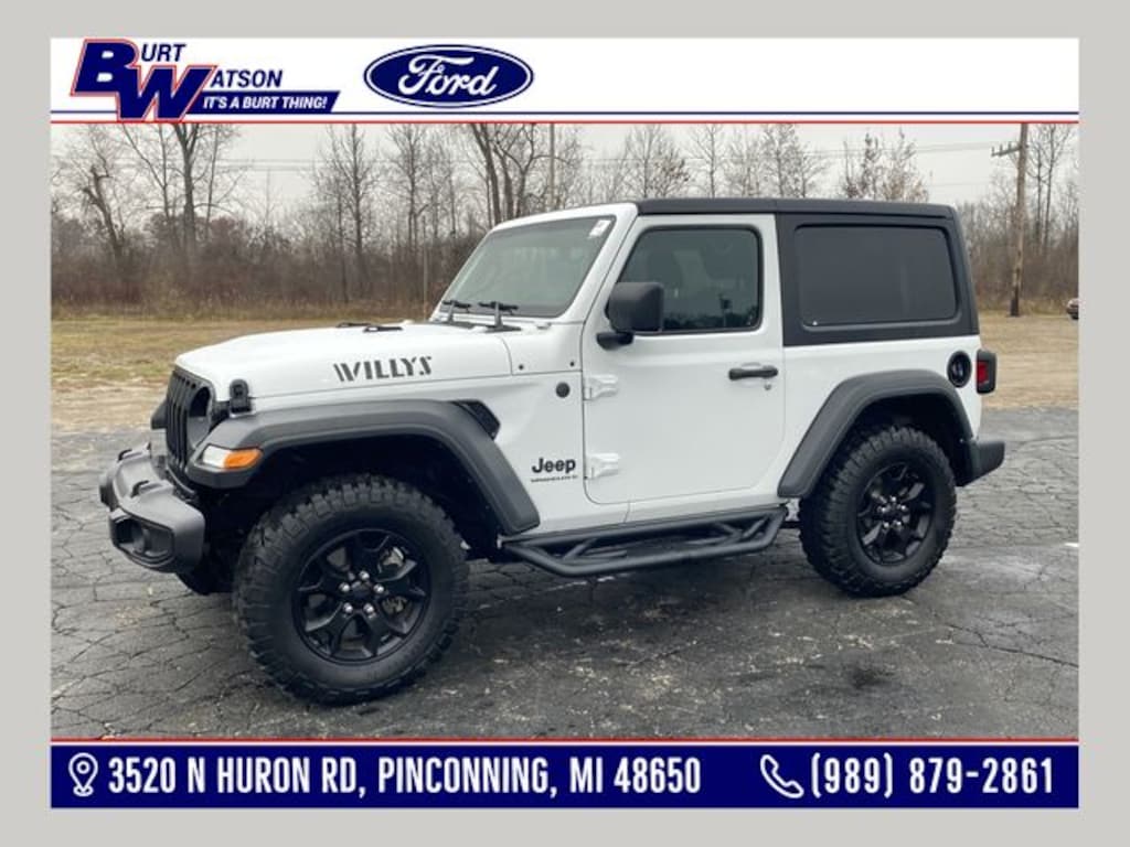 Local Trade, Non Smoker, 2 key sets, 172 point inspection certified, 1st oil change free with purchase, 2 Key Fobs, Ceramic coating available on all purchases at discounted pricing, service report available, Heated Seats, Digital Key, In-Vehicle Wi-Fi, Stolen vehicle location/ recovery system, 240 Amp Alternator, 3.45 Overall Top Gear Ratio, 4-Wheel Disc Brakes, 4-Wheel Drive Swing Gate Decal, 7 & 4 Pin Wiring Harness, 700 Amp Maintenance Free Battery, 8 Speakers, ABS brakes, Air Conditioning w/Auto Temperature Control, AM/FM radio, Anti-Spin Differential Rear Axle, Apple CarPlay, Apple CarPlay/Android Auto, Automatic Headlamps, Auxiliary Battery, Auxiliary Switches, Black Grille, Brake assist, Class II Receiver Hitch, Cloth Low-Back Bucket Seats, Compass, Deep Tint Sunscreen Windows, Delay-off headlights, Driver door bin, Driver vanity mirror, Dual front impact airbags, Dual front side impact airbags, Electronic Stability Control, Emergency communication system: SiriusXM Guardian, Engine Oil Cooler, Front anti-roll bar, Front Bucket Seats, Front Center Armrest w/Storage, Front fog lights, Front reading lights, Google Android Auto, GPS Antenna Input, Injection Molded Black Rear Bumper, Integrated Center Stack Radio, Integrated roll-over protection, Integrated Voice Command w/Bluetooth, Low tire pressure warning, Mold In Color Bumper w/Gloss Black, MOPAR All-Weather Floor Mats, Mopar Black Tubular Side Steps, Non-Locking Fuel Cap w/o Discriminator, Normal Duty Suspension, Occupant sensing airbag, Outside temperature display, ParkView Rear Back-Up Camera, Passenger door bin, Passenger vanity mirror, Power steering, Quick Order Package 23K Willys Sport, Radio data system, Radio: Uconnect 4 w/7" Display, Rear anti-roll bar, Rear reading lights, Rear Window Defroster, Remote Keyless Entry, Remote Start System, Security Alarm, Speed control, Start-Stop Dual Battery System, Steering wheel mounted audio controls, Tachometer, Telescoping steering wheel, Tilt steering wheel, Traction control, Trailer Tow & Aux Switch Group, Trip computer, USB Host Flip, Variably intermittent wipers, Wheels: 17" x 7.5" Black Aluminum, Wheels: 17" x 7.5" Black Steel Styled, Willys, Willys Hood Decal, 240 Amp Alternator, 3.45 Overall Top Gear Ratio, 4-Wheel Disc Brakes, 4-Wheel Drive Swing Gate Decal, 7 & 4 Pin Wiring Harness, 700 Amp Maintenance Free Battery, 8 Speakers, ABS brakes, Air Conditioning w/Auto Temperature Control, AM/FM radio, Anti-Spin Differential Rear Axle, Apple CarPlay, Apple CarPlay/Android Auto, Automatic Headlamps, Auxiliary Battery, Auxiliary Switches, Black Grille, Brake assist, Class II Receiver Hitch, Cloth Low-Back Bucket Seats, Compass, Deep Tint Sunscreen Windows, Delay-off headlights, Driver door bin, Driver vanity mirror, Dual front impact airbags, Dual front side impact airbags, Electronic Stability Control, Emergency communication system: SiriusXM Guardian, Engine Oil Cooler, Front anti-roll bar, Front Bucket Seats, Front Center Armrest w/Storage, Front fog lights, Front reading lights, Google Android Auto, GPS Antenna Input, Injection Molded Black Rear Bumper, Integrated Center Stack Radio, Integrated roll-over protection, Integrated Voice Command w/Bluetooth, Low tire pressure warning, Mold In Color Bumper w/Gloss Black, MOPAR All-Weather Floor Mats, Mopar Black Tubular Side Steps, Non-Locking Fuel Cap w/o Discriminator, Normal Duty Suspension, Occupant sensing airbag, Outside temperature display, ParkView Rear Back-Up Camera, Passenger door bin, Passenger vanity mirror, Power steering, Quick Order Package 23K Willys Sport, Radio data system, Radio: Uconnect 4 w/7" Display, Rear anti-roll bar, Rear reading lights, Rear Window Defroster, Remote Keyless Entry,
