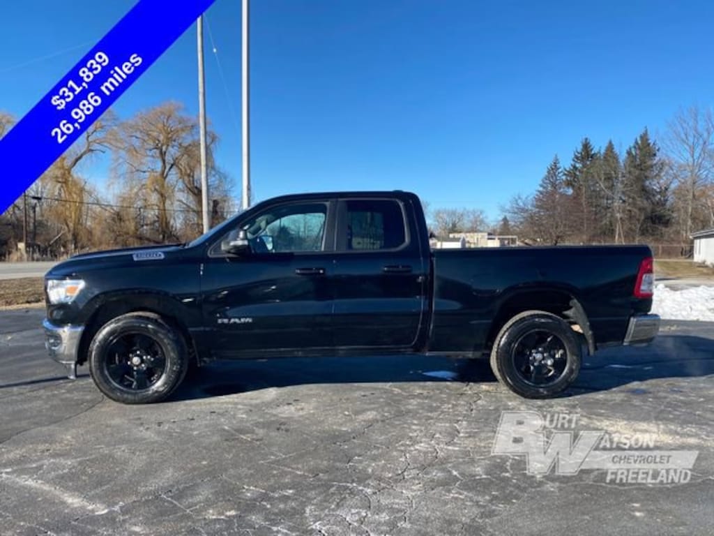 Recent Arrival! CARFAX One-Owner. Odometer is 35260 miles below market average! Priced below KBB Fair Purchase Price!*** WE DELIVER ***Diamond Black Crystal Pearlcoat 2022 Ram 1500 Big Horn/Lone Star 4D Quad Cab HEMI 5.7L V8 Multi Displacement VVT 8-Speed Automatic 4WD115V Auxiliary Power Outlet, 115V Auxiliary Rear Power Outlet, 3 Rear Seat Head Restraints, 4 Way Front Headrests, 4-Wheel Disc Brakes, 400W Inverter, 48V Belt Starter Generator, 4G LTE Wi-Fi Hot Spot, 6 Speakers, 8.4 Touchscreen Display, ABS brakes, Air Conditioning, Air Conditioning ATC w/Dual Zone Control, Alloy wheels, AM/FM radio, Apple CarPlay, Auto-Dimming Exterior Driver Mirror, Auto-Dimming Rear-View Mirror, Big Horn Badge, Big Horn Level B Equipment Group (DISC), Black Exterior Mirrors, Black Premium Power Mirrors (GUL), Bluetooth Handsfree Phone & Audio, Brake assist, Bumpers: chrome, Class IV Receiver Hitch, Cloth Bench Seat, Cluster 7.0 TFT Color Display, Compass, Connectivity - US/Canada, Convex Wide-Angle Mirror Insert, Delay-off headlights, Driver door bin, Dual front impact airbags, Dual front side impact airbags, Electronic Stability Control, Emergency communication system: SiriusXM Guardian, Exterior Mirrors Courtesy Lamps, Exterior Mirrors w/Supplemental Signals, Foam Bottle Insert (Door Trim Panel), For More Info, Call 800-643-2112, Front anti-roll bar, Front Center Armrest w/Storage, Front fog lights, Front License Plate Bracket, Front reading lights, Front Seat Back Map Pockets, Front wheel independent suspension, Fully automatic headlights, Global Telematics Box Module (TBM), Glove Box Lamp, Google Android Auto, GPS Antenna Input, Heated door mirrors, Heated Front Seats, Heated Steering Wheel, Illuminated entry, Integrated Center Stack Radio, Integrated Voice Command w/Bluetooth, Leather steering wheel, Low tire pressure warning, Manual Adjust 4-Way Front Passenger Seat, Manufacturer's Statement of Origin, Media Hub w/2 Charge Only USBs, MOPAR Front & Rear Rubber Floor Mats, Occupant sensing airbag, Outside temperature display, Overhead airbag, Overhead console, Panic alarm, ParkSense Front/Rear Park Assist w/Stop, ParkView Rear Back-Up Camera, Passenger door bin, Passenger vanity mirror, Power 2-Way Driver Lumbar Adjust, Power 8-Way Driver Seat, Power Adjustable Pedals, Power door mirrors, Power steering, Power windows, Quick Order Package 25Z Big Horn, Radio data system, Radio: Uconnect 3 w/5 Display, Radio: Uconnect 5 W w/8.4 Display, Rear 60/40 Folding Seat, Rear anti-roll bar, Rear Dome w/On/Off Switch Lamp, Rear Power Sliding Window, Rear seat center armrest, Rear step bumper, Rear Window Defroster, Remote keyless entry, Remote Start System, Security Alarm, SiriusXM Radio Service, SiriusXM Satellite Radio, Speed control, Split folding rear seat, Steering wheel mounted audio controls, Sun Visors w/Illuminated Vanity Mirrors, Tachometer, Telescoping steering wheel, Tilt steering wheel, Traction control, Trailer Brake Control, Trip computer, Universal Garage Door Opener, USB Host Flip, Variably intermittent wipers, Voltmeter, Wheels: 18 x 8 Cast-Aluminum Painted.